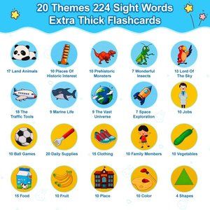 Features 20 core themes and 224 sight words, including shapes, colors, food, clothing, places, jobs, and much more. Each card has clear American accent pronunciation and colorful graphics that make learning fun and enjoyable. No need for a screen, just insert the card into the reader and press play.