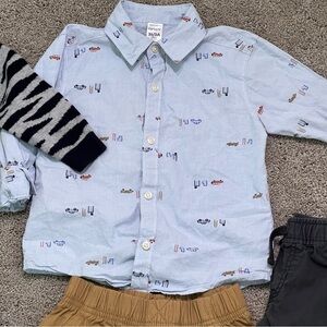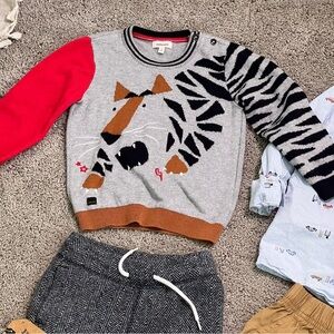 No flaws. catmini stylish tiger sweater. Gap quality patterned joggers Carters basically new car long sleeve button down with khakis set. Preppy NWT redwood creek 100% cotton khaki school uniform shorts. Old navy drawstring cotton cargo black shorts.