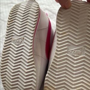 Toddler, girls,pink and white Nike Cortez with straps size 8c