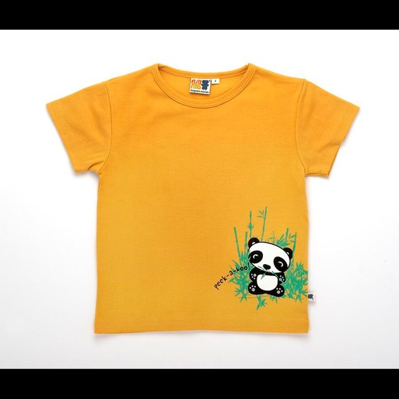 Toddler shirt with panda bear design on front and saying "peek-a-boo!"