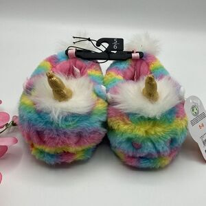 Toddler Baby Girls Plush Critter Unicorn Fuzzy Comfy Slippers Shoes Size 5/6