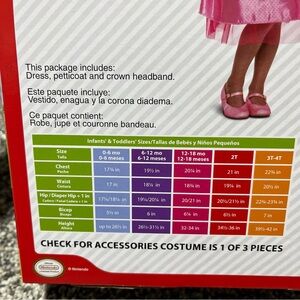 This adorable 'Princess Peach' costume in size 3T is perfect for your little one who loves the Super Mario theme. The dress, petticoat, and headband set is made of polyester material in a lovely pink color. The costume includes all the essentials for a cute and playful look, making it a great choice for dress-up time or special occasions. The brand Disguise ensures quality and attention to detail, making this costume a must-have for any young Princess Peach fan.