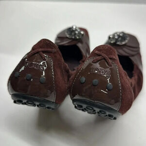 Tods Ballet Flats Slip On Shoes Jeweled Scrunch Back Suede Brown Size 39 US 9
