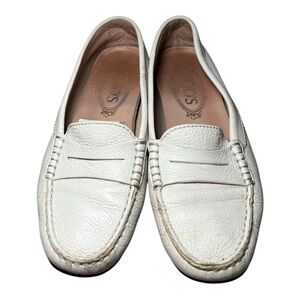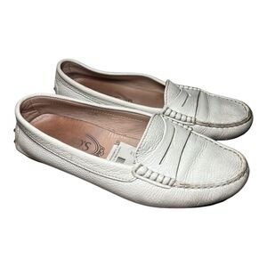 Tod's Big Girl Penny Loafer Moccasin Cream Off White Slip On Leather 35.5