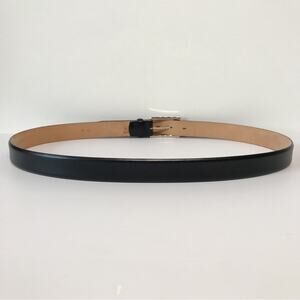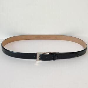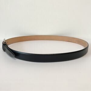 Tods Black Leather Tapered Embossed Logo Tip Dress Belt Silver Square 110 43.3