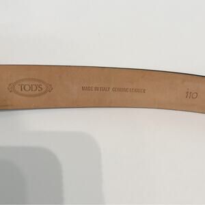Style - Rectangle / square buckle, tapered Tod's logo embossed tip dress belt