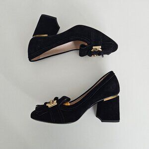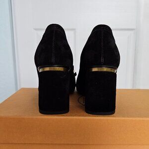Tod’s Black Suede Block Heel Pumps with Gold Detail – Size 36.5, NWOT