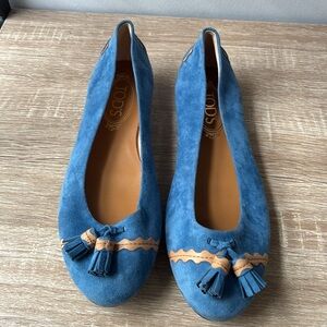 Tod's Blue/tan Leather Tassel Ballet Flats Size 38.5