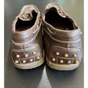 Tod's Boat Shoe Mens 11 Brown Loafer Driving Moc Pebble Leather Gum Sole Preppy