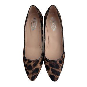 Tod's Calf Hair Leopard Print Pump Heel, Size 35.5 NWOB