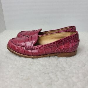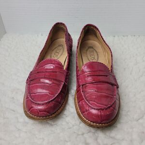 Tod's Cocrodile Leather Womens Penny Loafers Size 7 Purple Slip On Shoes