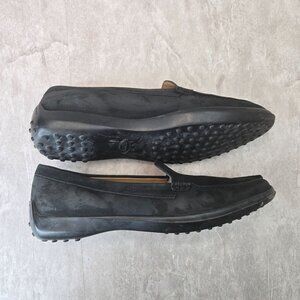 Tods Driving Loafers 9.5 Black Leather Preppy Career Slip On Dress Pointed Shoes