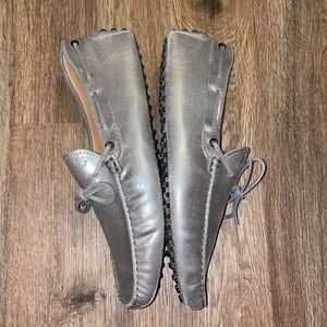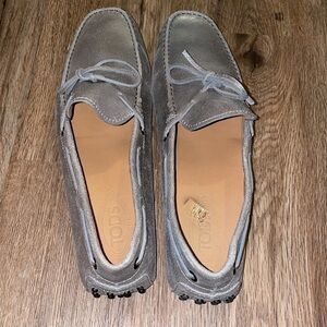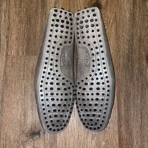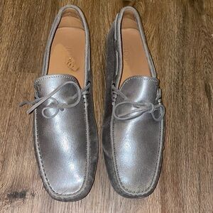 Tod's Driving Shoes men’s size - 10.5, metallic leather, worn a few times, there is a little rubbing off the front bottom, not noticeable at all when they’re on, you can probably put some shoe polish to cover it, please see all pics. Besides that they’re in good condition.