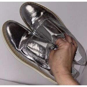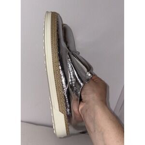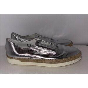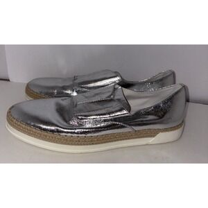 Tod's Francesina Espadrille Slip-on Shoes Raffia Metallic Silver Leather 7.5