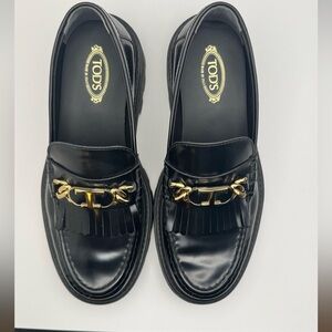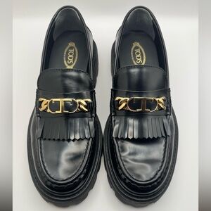Tod's Fringed Loafers in Black Leather- size 37.5