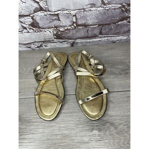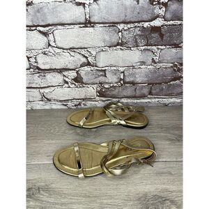 Selling Tods Gold Leather Open Toe Ankle Strap Flats Sandals Women’s Sz 35EU/5M US