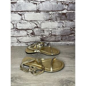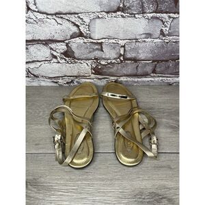 Tods Gold Leather Open Toe Ankle Strap Flats Sandals Women’s Sz 35EU/5M US