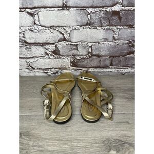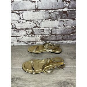 Selling Tods Gold Leather Open Toe Ankle Strap Flats Sandals Women’s Sz 35EU/5M US
