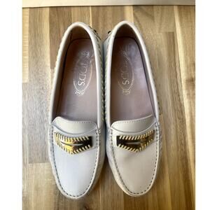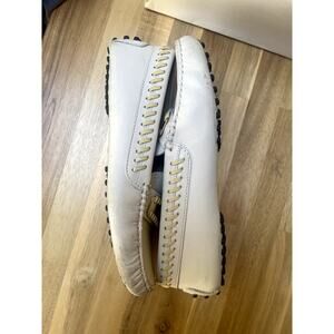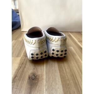 Tod's Gommino Womens Driving Loafers Shoes White Leather Gold Buckle Size 36.5