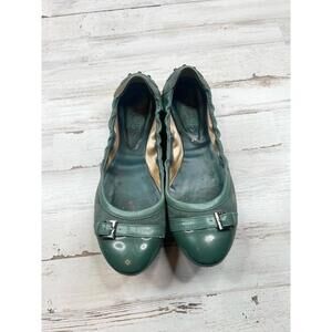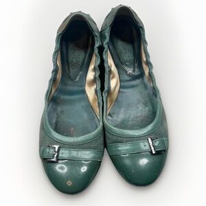 Tods Green Metal Buckle Embellishment Round Toe Scalloped Edge Ballet Flats 37