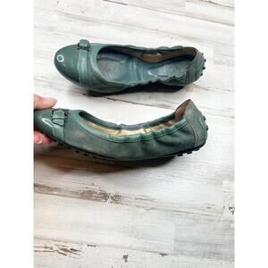 Tods Green Metal Buckle Suede Round Toe Scalloped Edge Ballet Flats Size EU 37