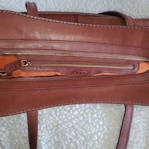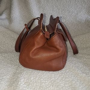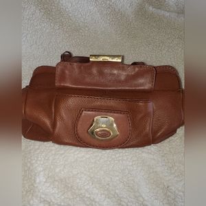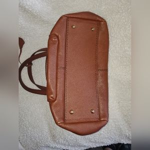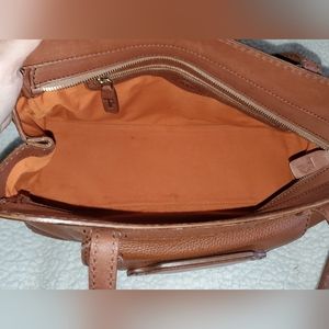 Geninue Italian Leather. V01A2013. Camel color outside, Orange inside. Few ink marks on the inside. Blemish on latch on the outside (see picture)
