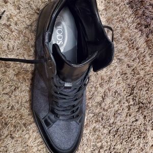 Tods Hi-Top Leather and Wool Sneakers - Size 11.5