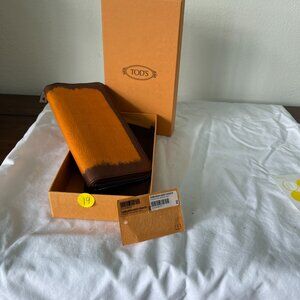 Tod's Italy Color block Orange/Brown Zip Continental Wallet XAWDSPA04Z0DOUL016