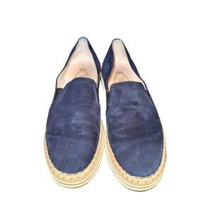 Tod's Jute Trimmed Espadrille Sneaker Women's Size 7 Blue Suede Slip On Shoe