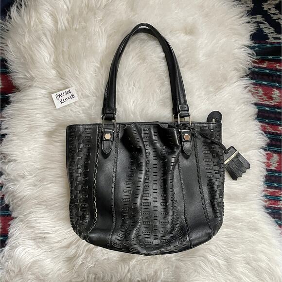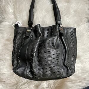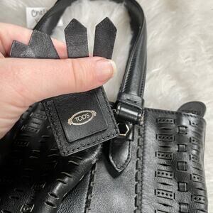 Tod's Black Leather Laser Cut Flower Tote Shoulder Bag Small Lazer Perforated