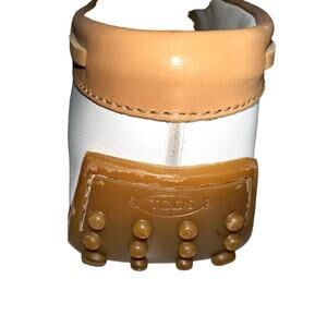 Tod's Camel White Leather Laces Slip On Country Club Preppy Moccasin Boat Luxury Loafers Flats Shoes