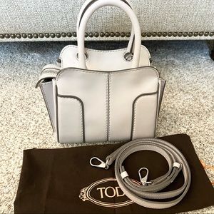 Tod’s Mini Sella Dove Gray Crossbody Handbag Purse genuine leather Italy