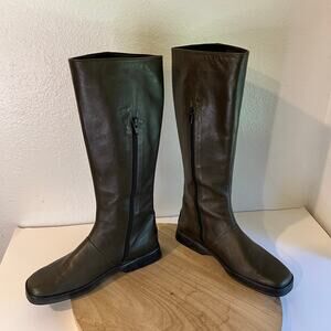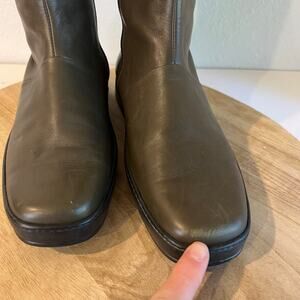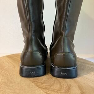 Tod's Olive Green Italian Leather Zipper Side Square Toe Mid Calf Boots Size 6.5