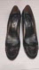 Thus article worn several times. colir is black. few light scratches. heels are in great condition 2". no box. suede patent leather upper.