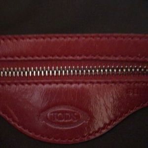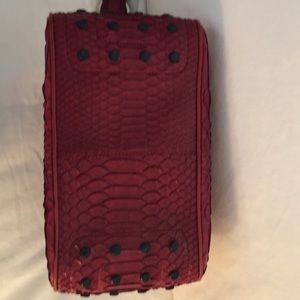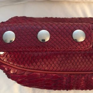 Tods Adorable red python handbag. Super fun bag with silver tone hardware. Worn a couple of times. No sign of wear. Classic end pockets in bag. Zip top closure. 100 percent authentic