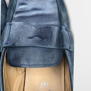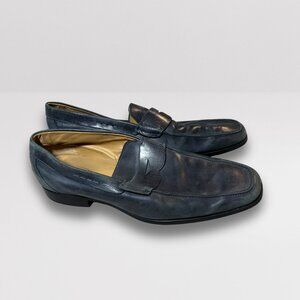 Visible scuff marks and wear on the leather exterior, minor creasing on upper. Interior soles show signs of use. Approx. length = 12.5 inches.
