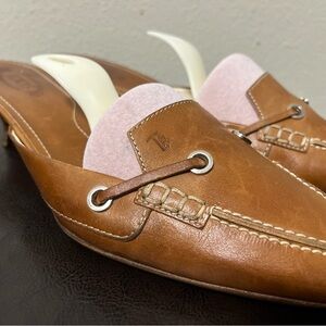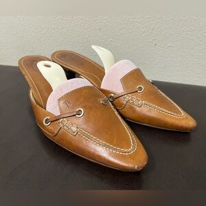 Tod’s Size 9 Tan Leather Pointed Toe Kitten Heel Mules Slides Whimsy Cottage