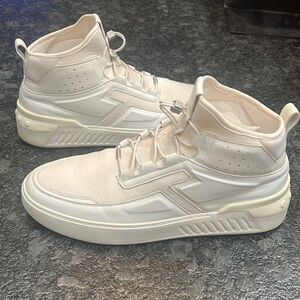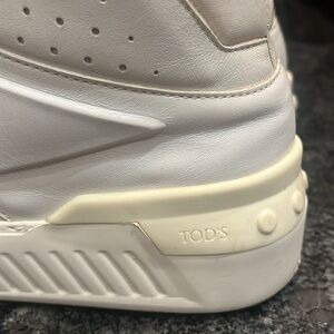 This is a great pair of men’s Tod's Sz 10.5 No_Code X in Leather and High Tech Fabric Pull In High Tops. Very good pre owned condition. Normal signs of wear, minor scuffs and minor wear. No tears, no odors. combining leather with high-tech fabric.