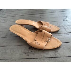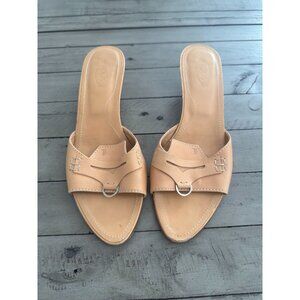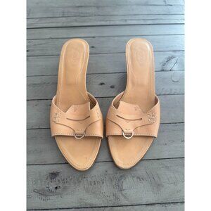 Tod's Tan Leather Kitten Heel Open Toe Slide Sandals Size 9.5