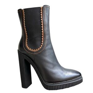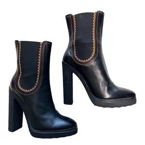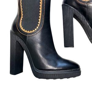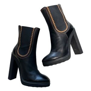Tod’s Tronchetto Elast Ankle Platform Heel Boots in Black Biscuit Trim size 39