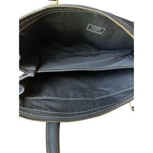 -Description: Tod's Vintage shoulder bag, like new. In perfect condition. Black suede with leather trim. Gold logo hardware. Divided pockets inside with no wears, tears or stains. Two side pockets inside. Edges on bottom of purse are intact with only one minor scuff - see photos. Handles in perfect condition as well. Must have, beautiful vintage bag!