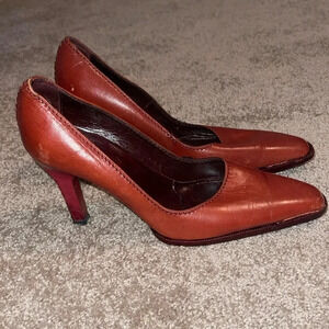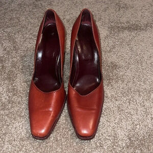 Tod’s Vintage Whiskey Leather Back Stitch Square Toe Heels - size 39
