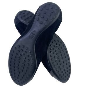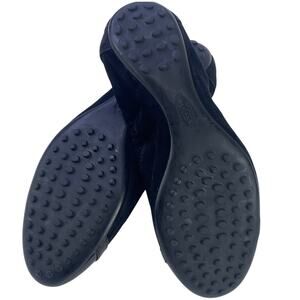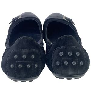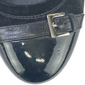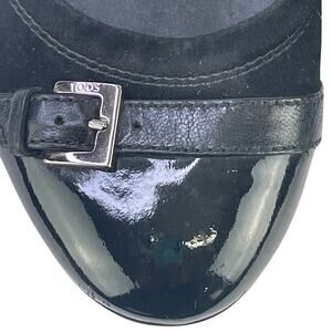 Tods Women Black Suede Ballet Flats Patent Leather Cap Toe Buckle Detail Sz 36.5