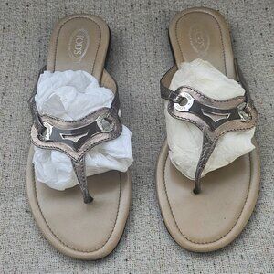 Tod's Women Sandal Brown Leather Upper Flat Shoes Made in Italy Size 39.5