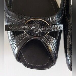 Tods Women's Black Patent Leather Open Toe Slip On Size 39