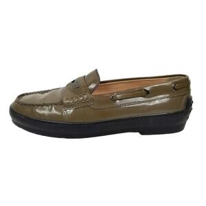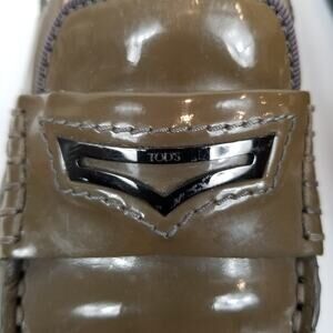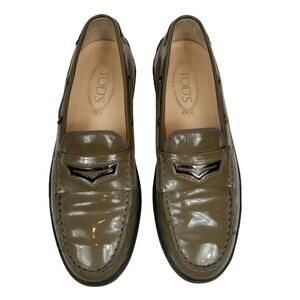 Tod's Women's Gommino Olive Green Patent Leather Driving Loafers Size 8.5