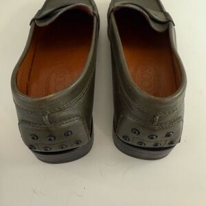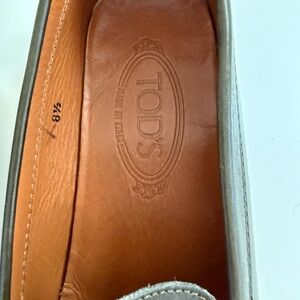 Elegant dark gray leather slip-ons by Tod's. Perfect for a refined look.