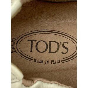 Tods Womens Ivory Leather Loafers With Silver Buckle Accent Size 37