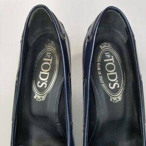 Tod's Women's Patent Leather Penny Loafer Pumps Blue Size EU 35/US 5 block heel