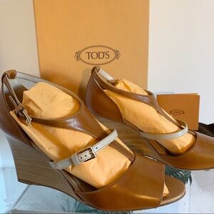 If you are looking for a stylish and comfortable pair of sandals, you might want to check out Tod's Women's leather wedge two tone sandal.